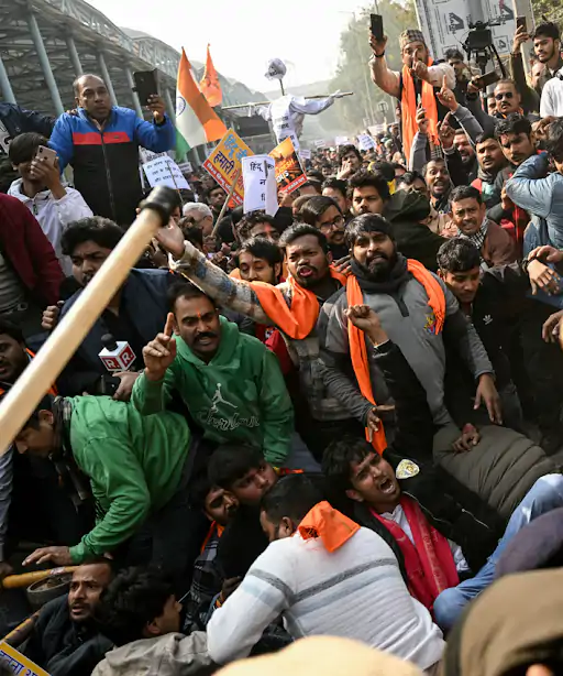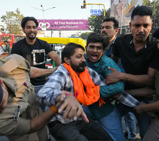 बांग्लादेश में हिंदू युवक दीपू चंद्र दास की हत्या के विरोध में नई दिल्ली में विश्व हिंदू परिषद (VHP) के कार्यकर्ताओं ने बांग्लादेश उच्चायोग का घेराव किया।