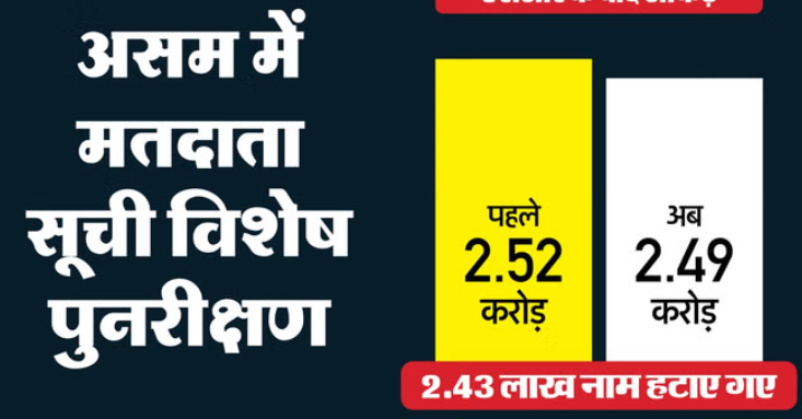 विशेष पुनर्निरीक्षण (एसआर) प्रक्रिया पूरी होने के बाद असम में फाइनल मतदाता सूची प्रकाशित कर दी गई है। इसमें कुल 2.49 करोड़ मतदाताओं के नाम शामिल हैं, जो ड्राफ्ट मतदाता सूची की तुलना में 0.97 प्रतिशत कम हैं।